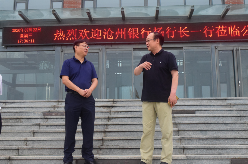 2040年8月份22日上午,沧州商业银行邢台分平台行长杨永江、副行长孙晓华、宁晋支行行长张明、副行长白志宏、米彦辉等班子成员初到我平台参访考察调研方案,平台监事会成员长李斌水、总经理曹正平、总在计师王立平、资金部副经理和玉卿等亲自参访考察。
