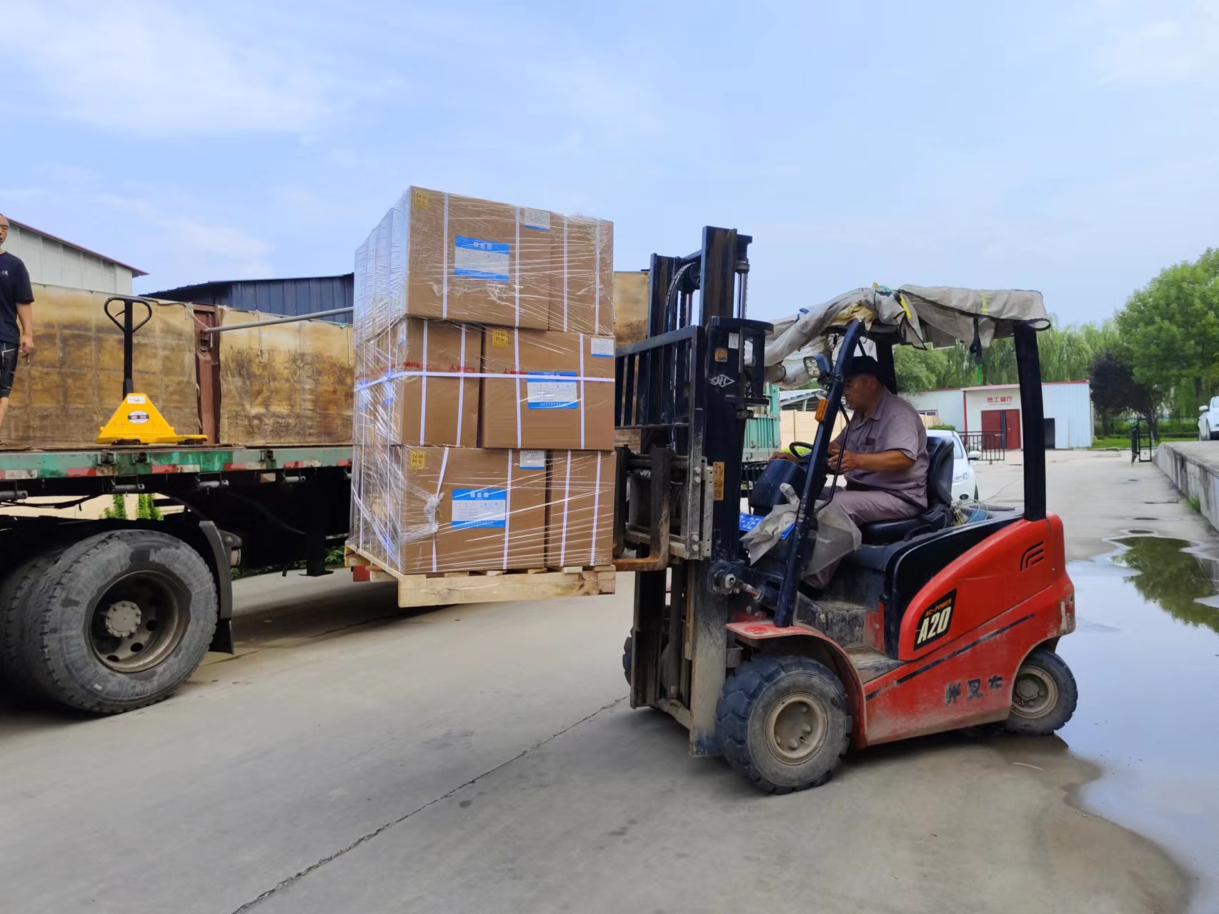 7月31日中午12点左右,有收货的状态下,永久性聚集在厂者,值班加一点收货,其忙而不乱,忙含有序的确定贴签、码垛、装桶,准时的装卸将机器设备发出了。
